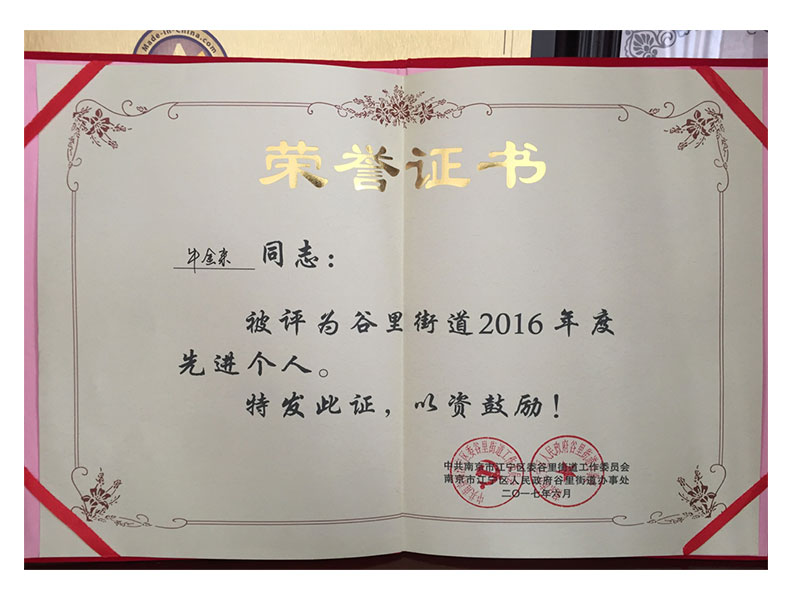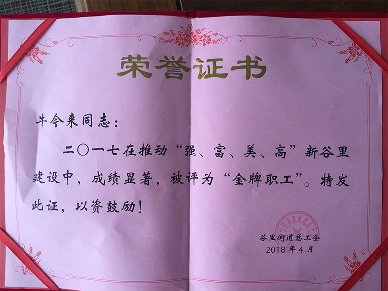 ?公司法人再獲谷里街道總工會頒發(fā)榮譽(yù)證書