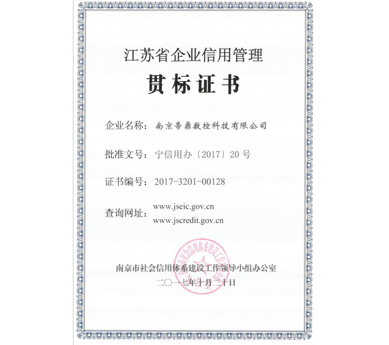 ?公司被評為: 江蘇省信用貫標(biāo)企業(yè)